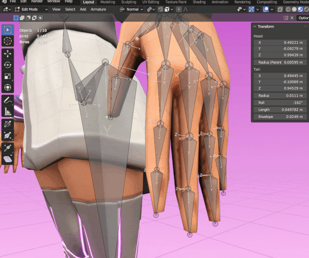 If the shape feels off, you can always edit it in Edit Mode, as shown below. Make sure the shape has the same orientation os the bone.