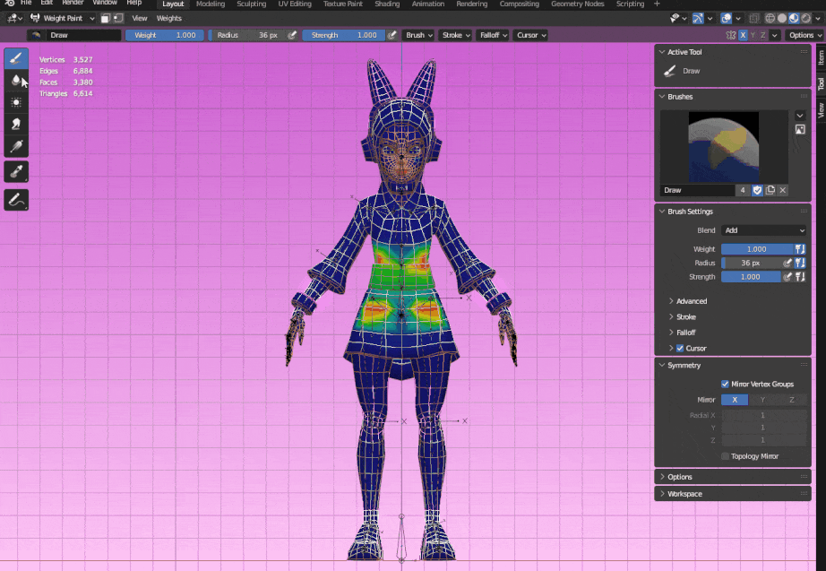If you feel like a bone has been misplaced or that the pivot point is not accurate, you can always go back to the armature’s Edit Mode and adjust it. This won’t affect the skinning at all and you can always use Symmetrize to mirror the changes.