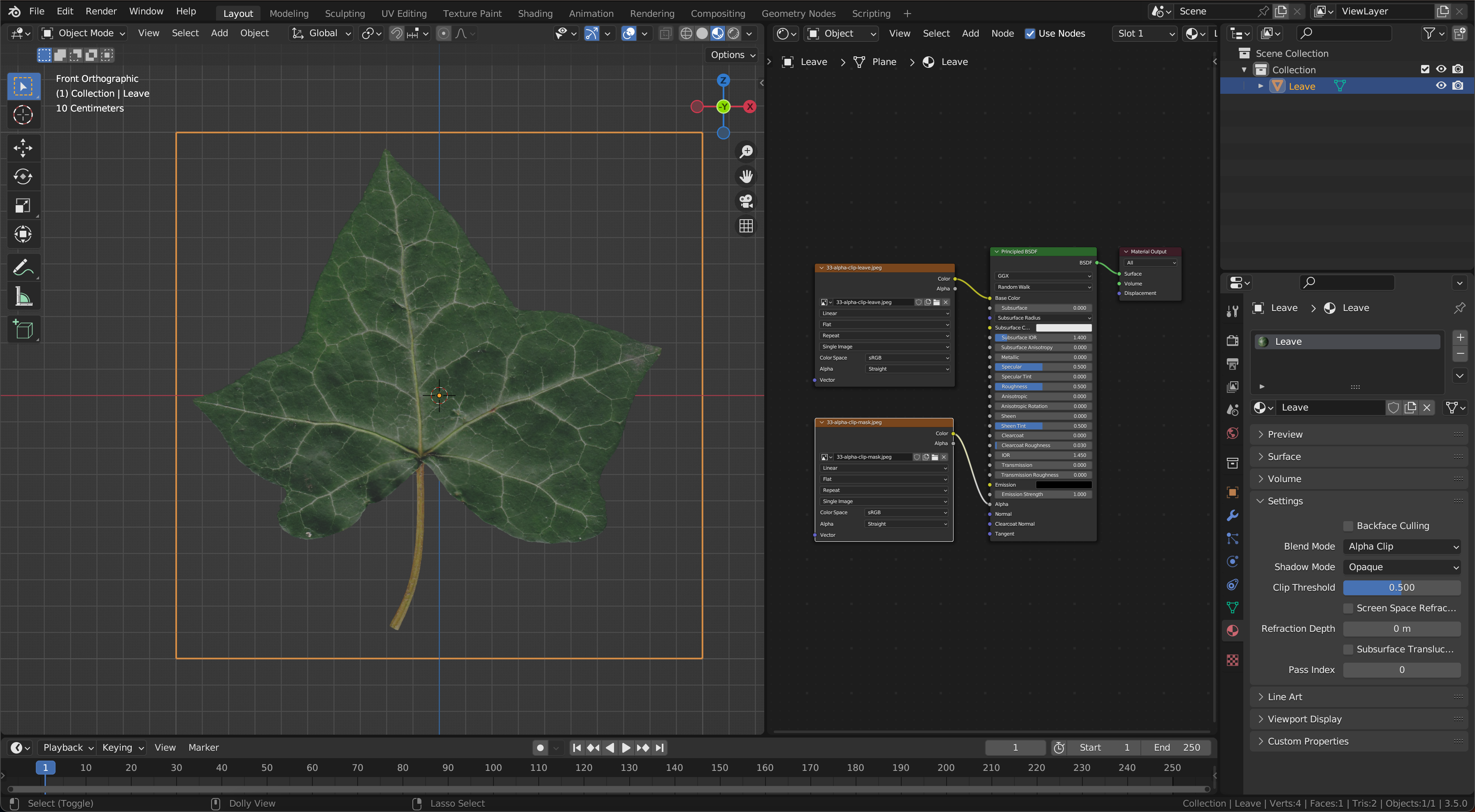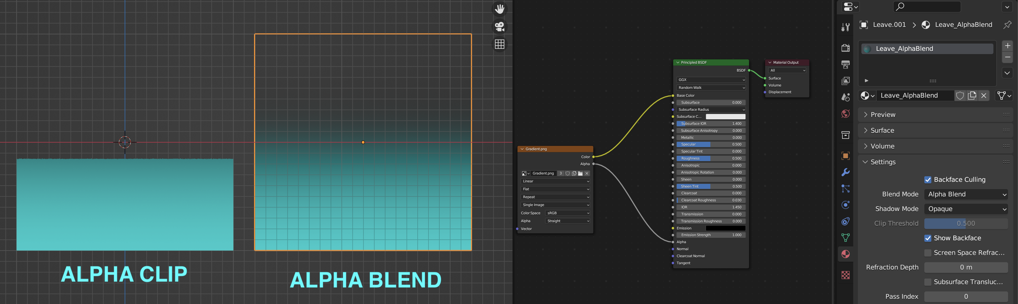 Alpha Clip in Blender, when used with a texture, involves using the alpha channel of the texture to determine which parts of the material should be visible. Pixels with alpha values above a specified threshold are shown, while those below the threshold are discarded, creating a cutout effect based on the texture’s transparency information.