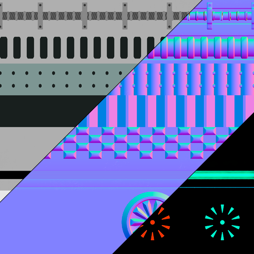 A normal map is a type of texture used in 3D graphics to simulate fine surface details and create the illusion of complex geometry without actually altering the underlying geometry of a model. It’s commonly used to enhance the realism of low-poly models by adding the appearance of bumps, crevices, and other surface irregularities. It also allows you to keep the object themselves lighter, as lots of details can be provided on the normal map layer instead of complex geometry.