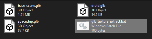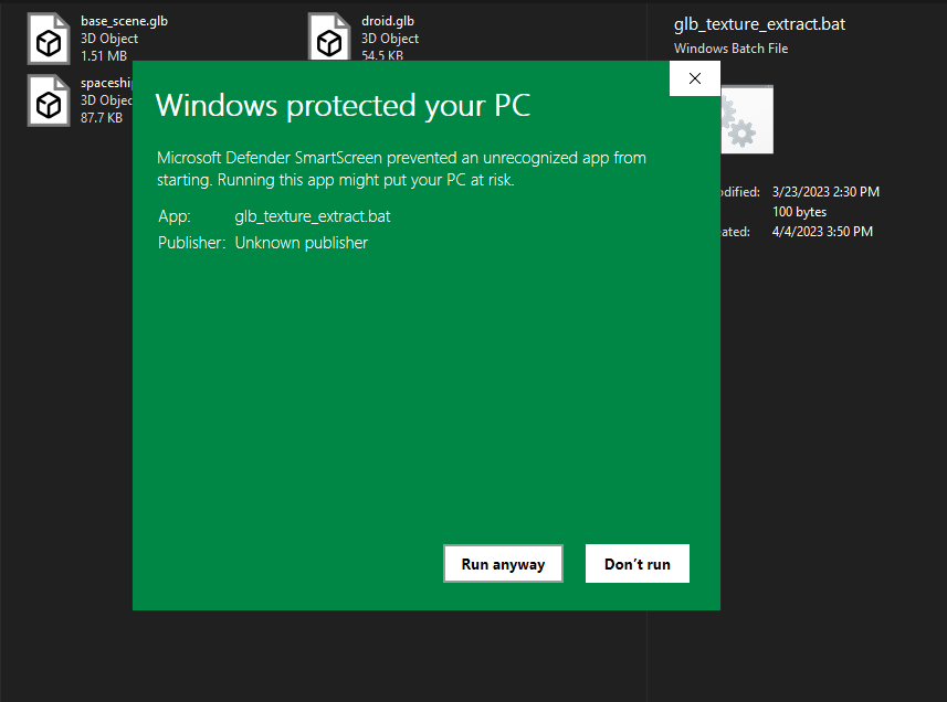 1 - Double click on glb_texture_extract.bat to extract the files. If Windows warns you about unrecognized app, go to More Info and then Run anyway.