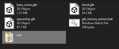 2 - The script will generate a folder called out , there you will fid all new .glb files with its extracted textures.