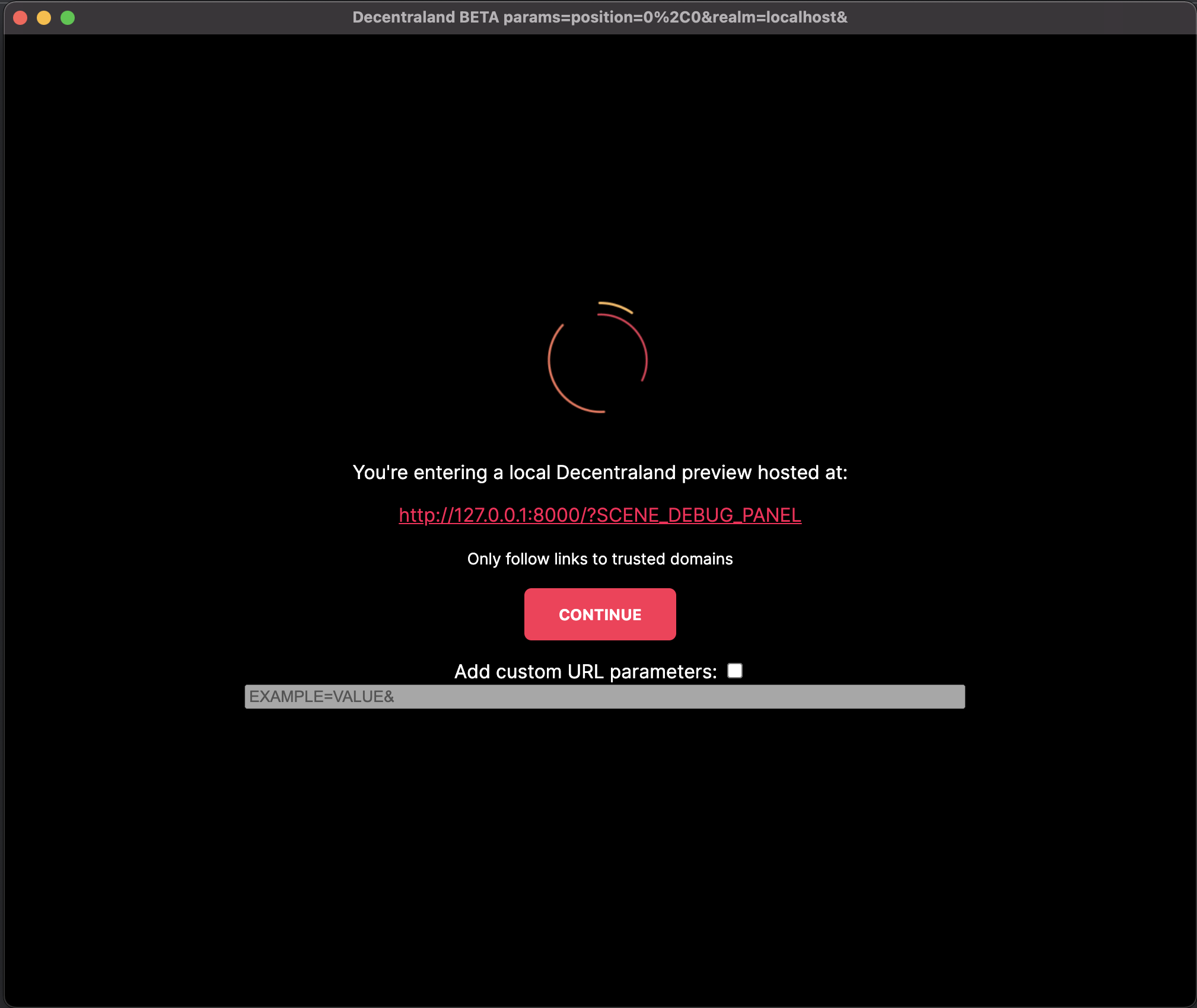 --portto assign a specific port to run the scene. Otherwise it will use whatever port is available.--no-debugDisable the debug panel, that shows scene and performance stats--no-browserto prevent the preview from opening a new browser tab.--wor--no-watchto not open watch for filesystem changes and avoid hot-reload--cor--ciTo run the parcel previewer on a remote unix server--web3Connects preview to browser wallet to use the associated avatar and account--skip-version-checksAvoids checking if the scene’s ECS library version matches your CLI version, and launches the preview anyway.--desktop-clientRuns the preview in the Decentraland Desktop client
