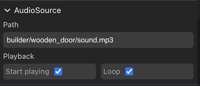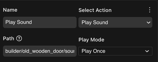π Note: A smart item can only play one sound at a time. Calling a second sound will interrupt any other sounds currently sounding. This also applies to sounds of the AudioSource component. If you need two sounds to sound together, consider adding an invisible entity in the same location to hold a Play Sound action.