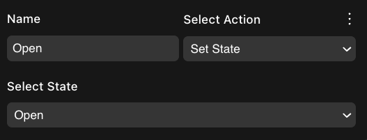 One of the states is selected as the default, the item will always start in this state when the scene runs. You can assign a different state to be the default by clicking the three dots next to another one of the states and selecting Set as Default.