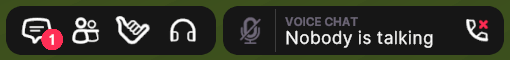 LEAVEbutton situated either at the top right of the Voice Chat window or on the right side of the Voice Chat bar. - To rejoin, click on the