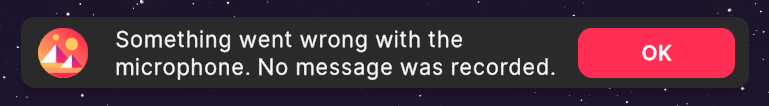 For some users, when they try to send an audio message for the first time, may receive this warning message in the top of the screen.