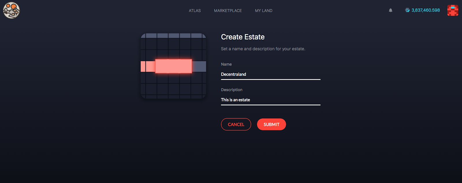 To create your first Estate, you need to own two or more adjacent LAND parcels.