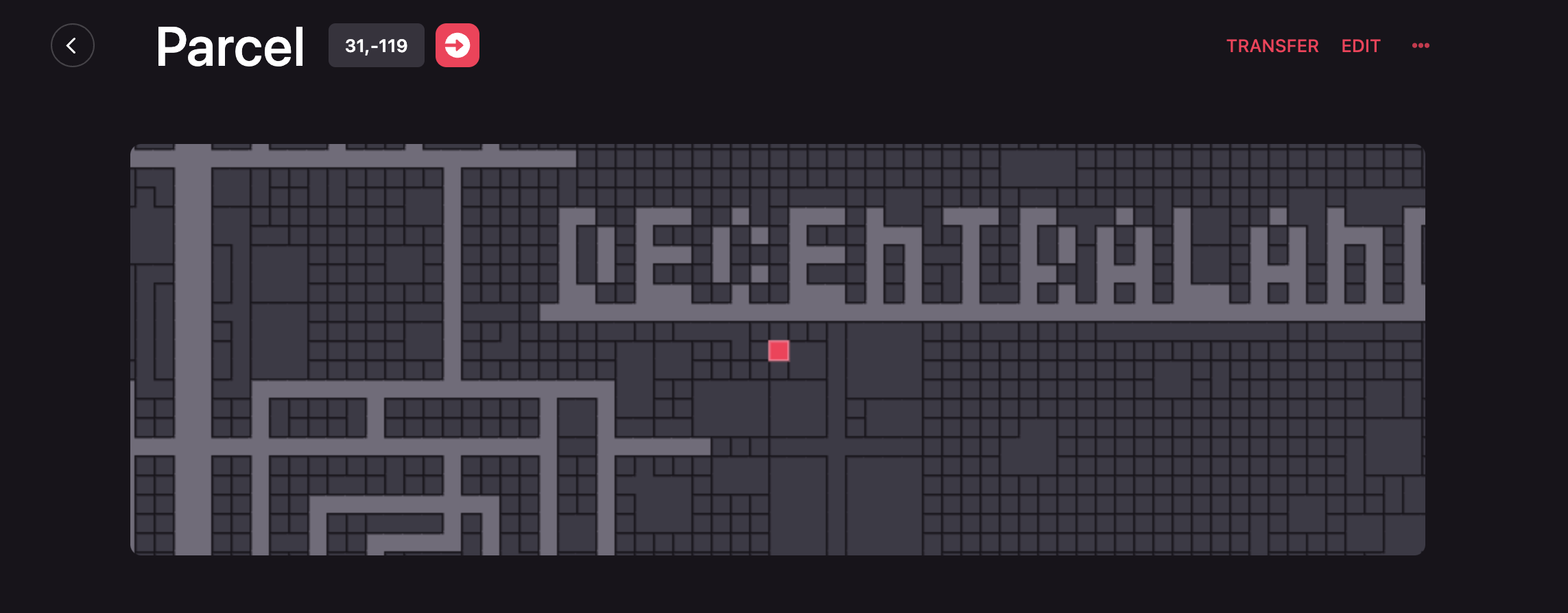 By clicking on one of the parcels or Estates listed under Land, you can edit its name, description, set an operator, or transfer it directly to another wallet address.